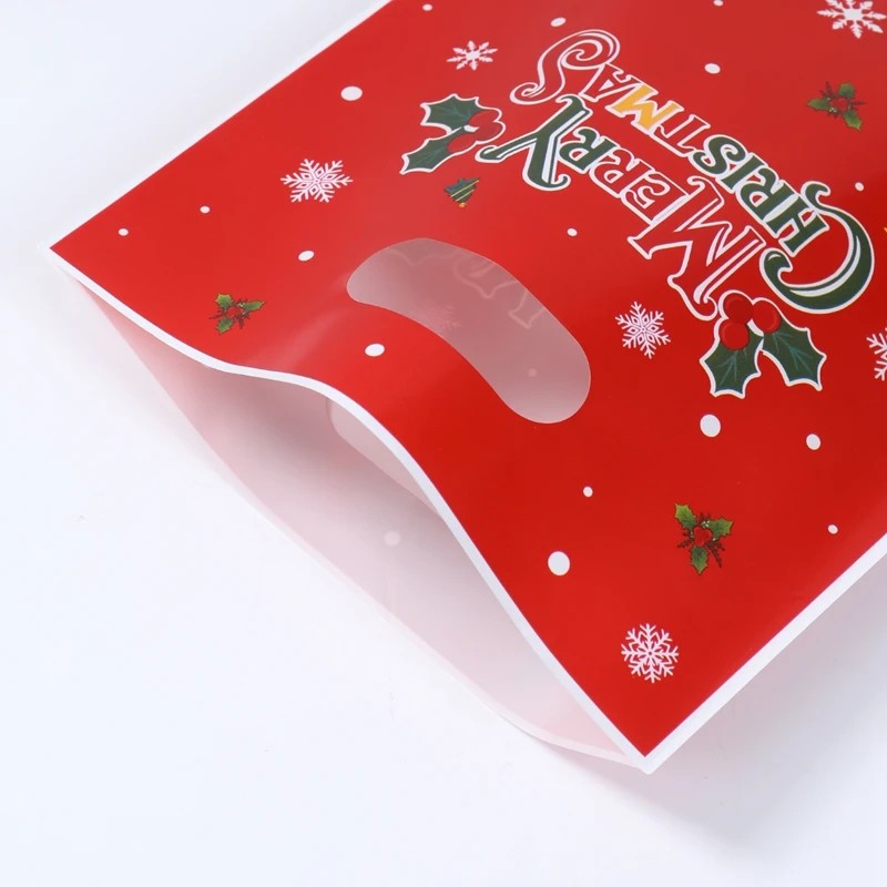 10 pungi de Crăciun Crăciun Fericit 25 x 16,5 cm Pungi mici din plastic cu mânere pentru cadouri mici și dulciuri Ambalaj de Crăciun