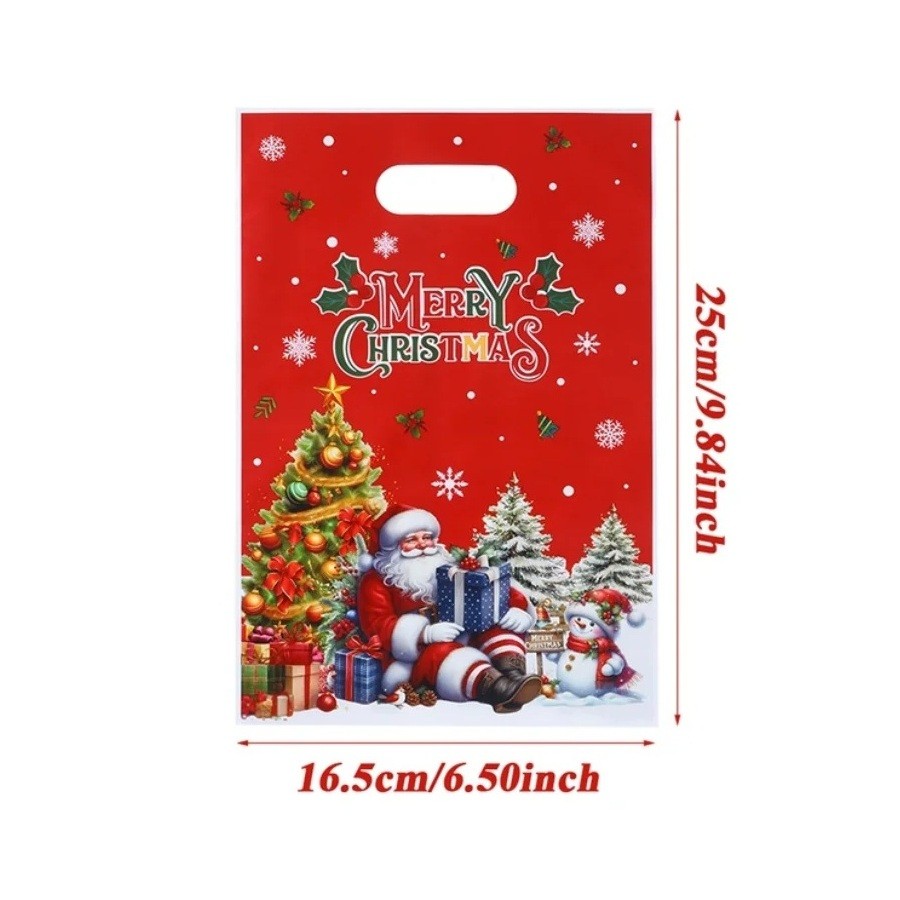 - Ambalaj: 10 pungi de Crăciun cu imprimeu Crăciun Fericit