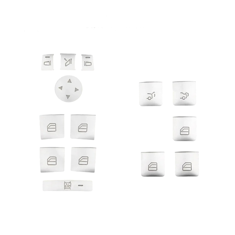 Set de 14 autocolante pentru butoane pentru modelele Mercedes Benz ABC Class W204, W212, GLA, GLK, CLA, GL, ML, GLE, fabricate din material ABS în crom perlat. Descrierea completă