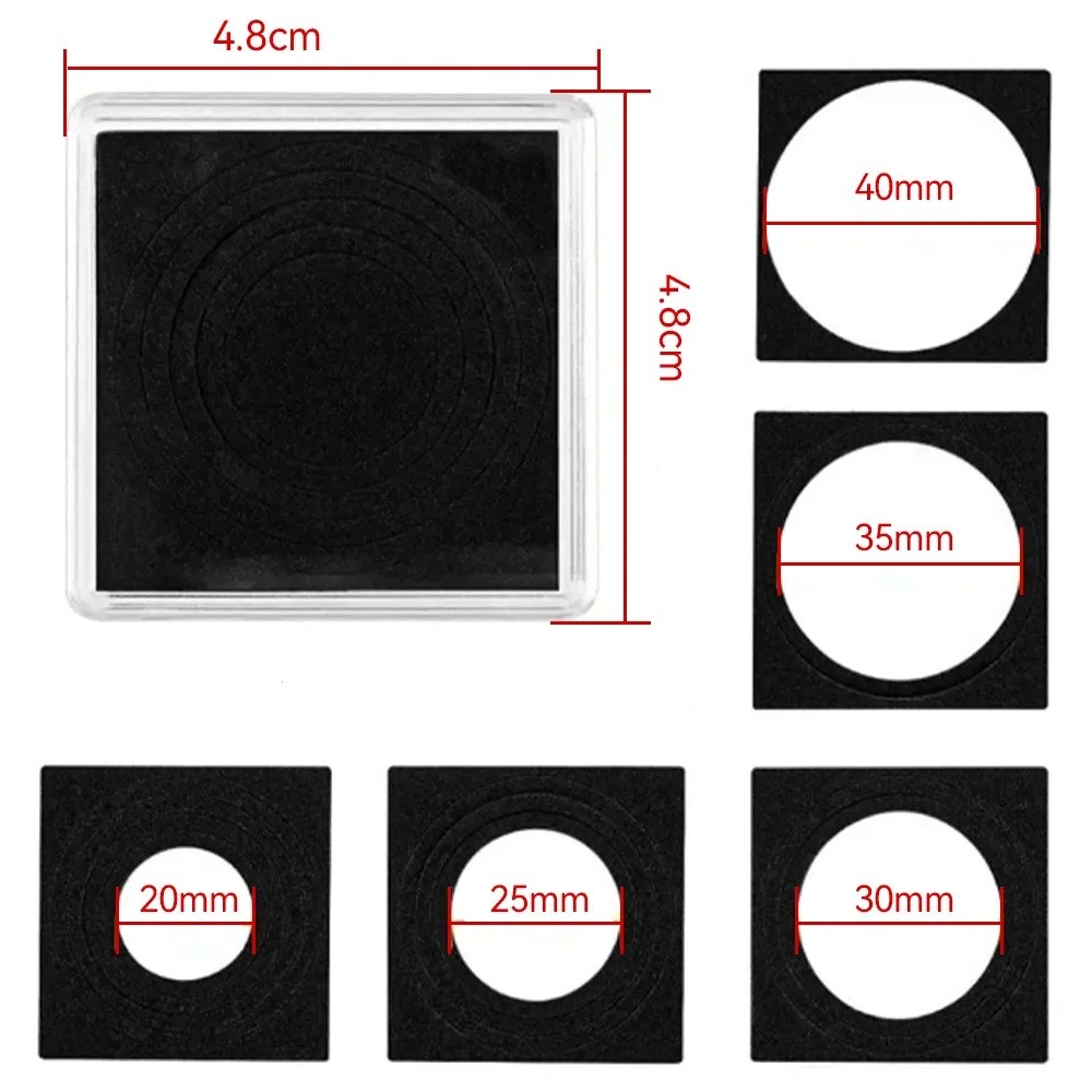 20 bucăți Suporturi plastice pătrate pentru monede Capsule din acril cu spumă Pentru diametre de 20 25 30 35 40 mm