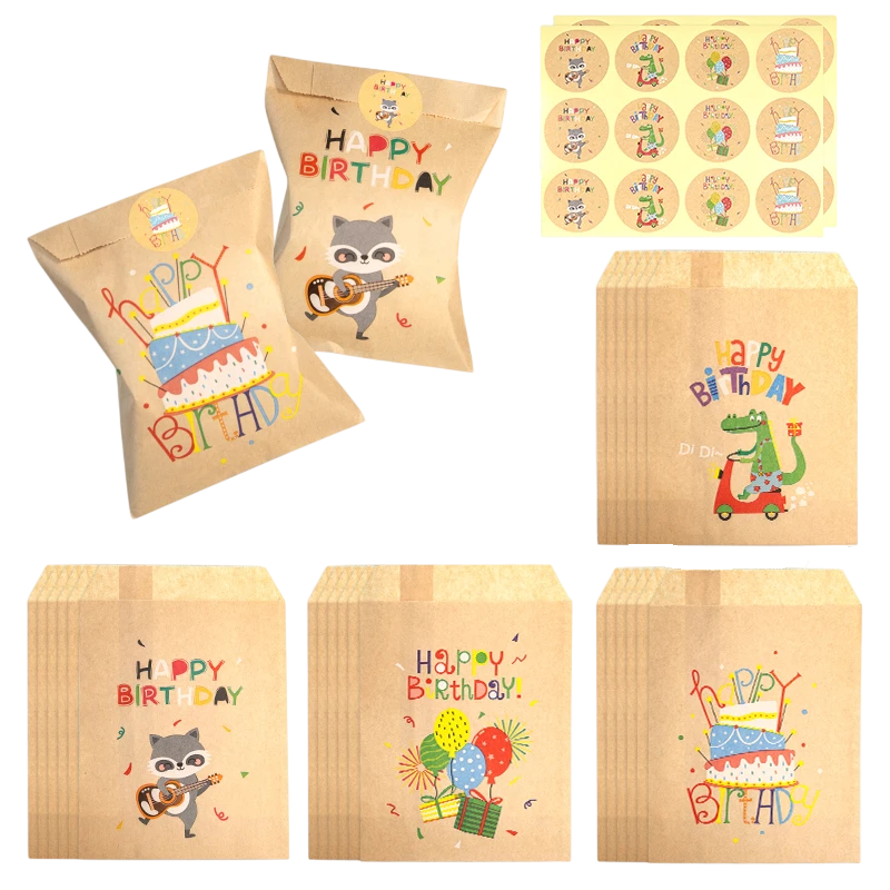 Această set 24 pungi de cadou kraft cu motive de ziua de naștere este complementul perfect pentru sărbătorile de ziua de naștere, petreceri și evenimente tematice. Fiecare pungă are dimensiunile 13 x 18 cm, ceea ce este dimensiunea ideală pentru ambalarea bomboanelor, biscuiților, cadourilor mici sau suvenirurilor. Pungile sunt fabricate din hârtie kraft rezistentă și ecologică, care asigură durabilitate și un aspect elegant.