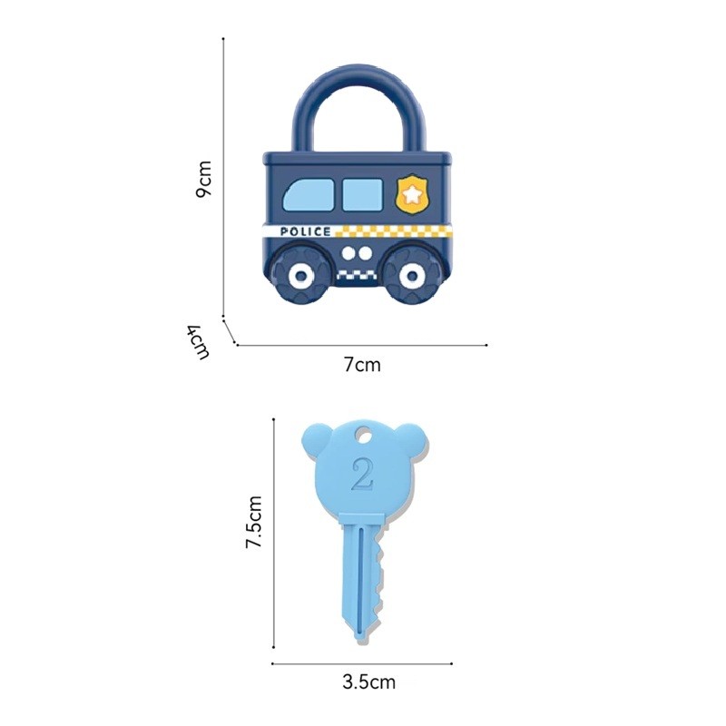 Această set de trei vehicule educaționale cu lacăt și cheie este conceput pentru copii care învață prin descoperire și activitate practică. Fiecare vehicul are propriul său lacăt și o cheie colorat asortată, pe care copilul trebuie să o asocieze corect și să o introducă pentru a debloca vehiculul. Acest lucru contribuie la dezvoltarea naturală a motricității fine, coordonării mână-ochi și gândirii logice, deoarece copilul experimentează, compară și caută combinația corectă. Vehiculele cu teme de tren, autobuz școlar și mașină de poliție stimulează, de asemenea, imaginația, dezvoltarea limbajului și crearea propriilor povești. Datorită construcției robuste și sigure, acest joc este potrivit pentru utilizarea zilnică și devine un ajutor excelent în educația timpurie.