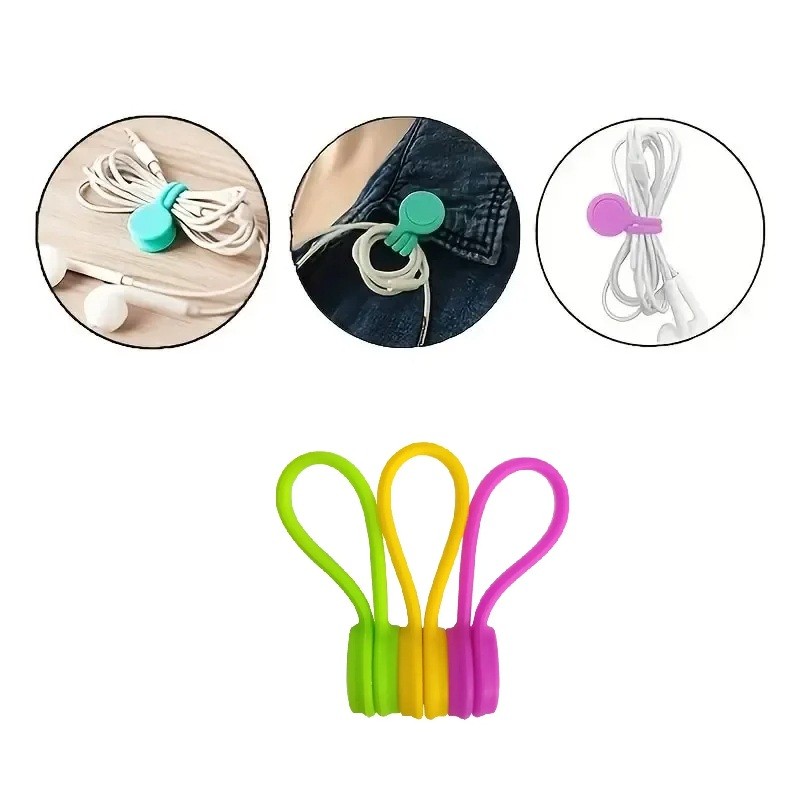 Set colorat de 3 brățări din silicon pentru organizarea căștilor, încărcătoarelor și cablurilor mici. Descrierea completă