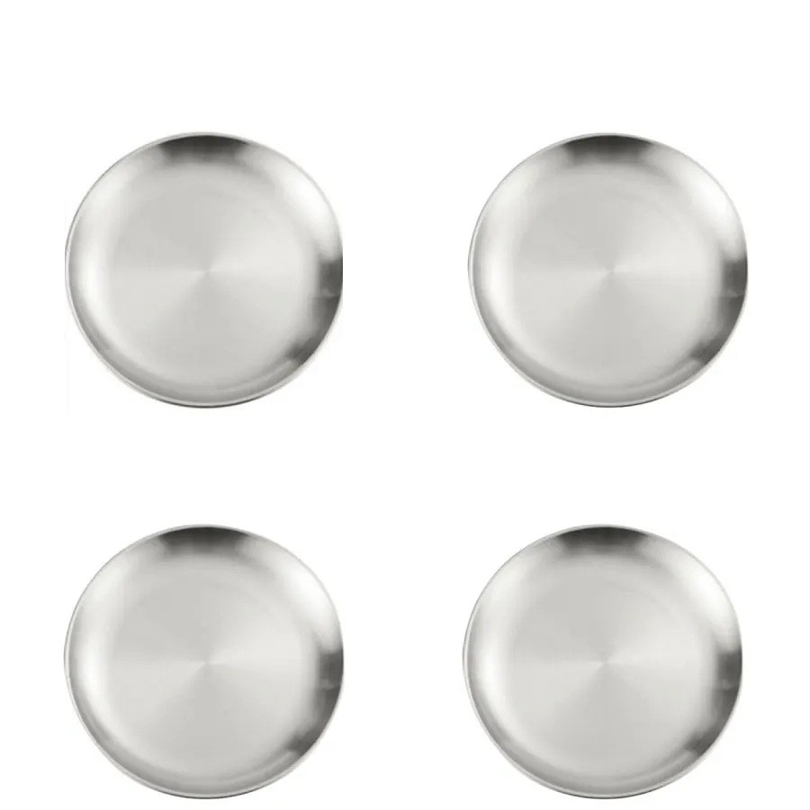 4 bucăți farfurii din oțel inoxidabil 30 cm Farfurii de bucătărie argintii pentru porții mari de feluri principale pentru servirea festivă și zilnică
