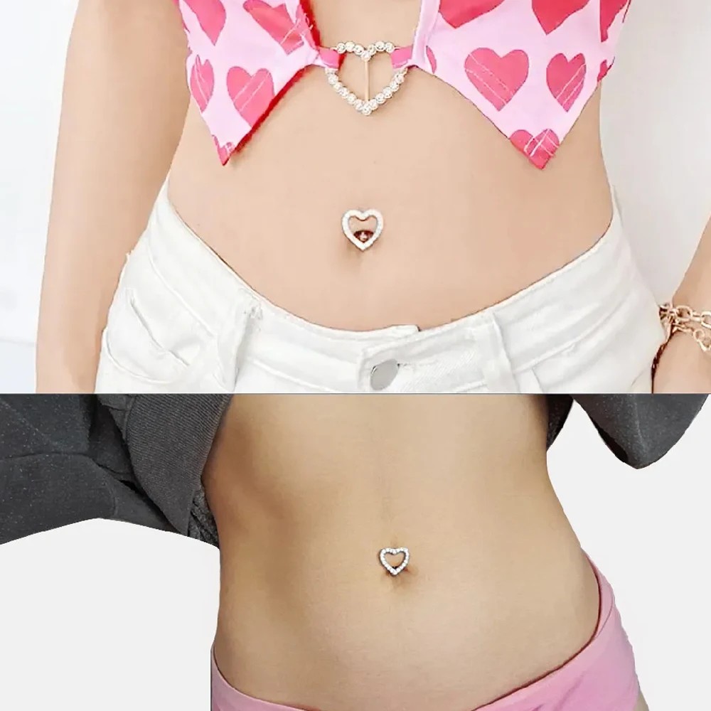 4 bucăți Piercing din oțel inoxidabil Finisaj argintiu Cristale în formă de inimă Bijuterii elegante pentru corp cu efect diamantat