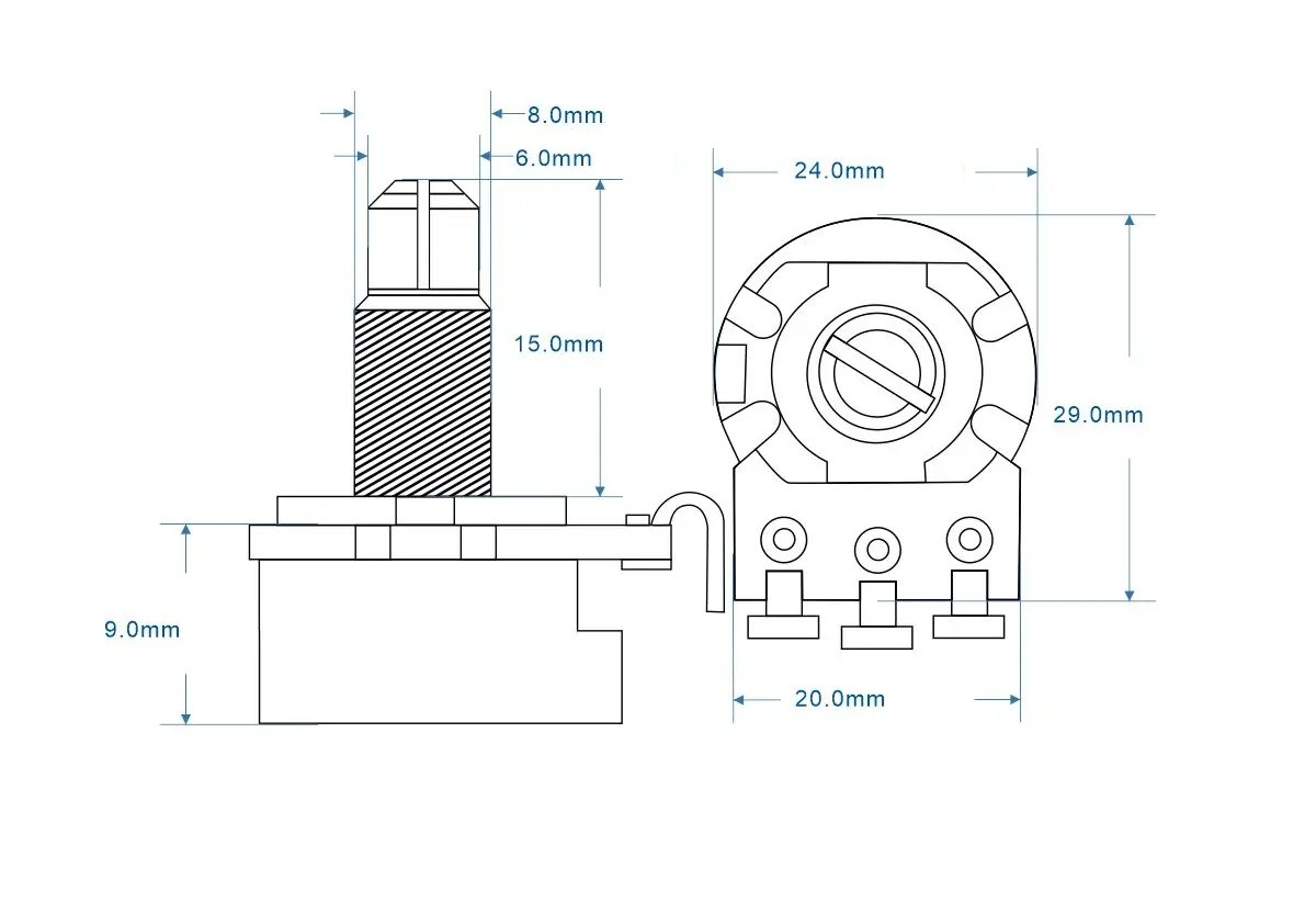 4× potentiometru B250K cu ax scurt pentru chitară electrică