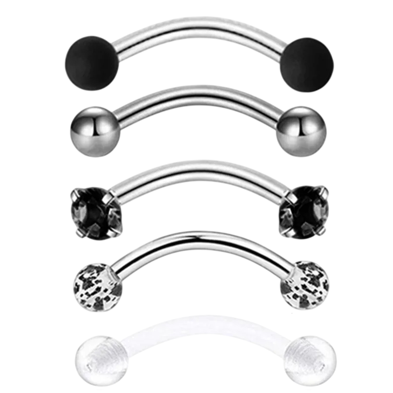Set de cinci cercei pentru sprâncene din oțel inoxidabil cu detaliu de diamant, cu dimensiunea de 1,2 × 8 × 3 mm pentru utilizare zilnică. Descrierea completă