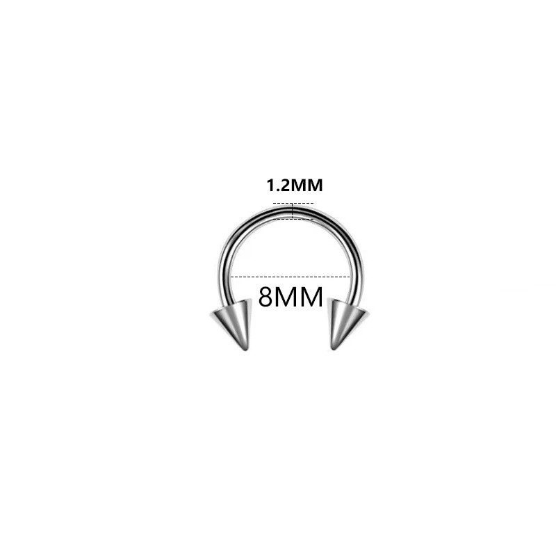 Set de cinci piercinguri în formă de potcoavă din oțel chirurgical cu lungimea de 8 mm, potrivit pentru diferite tipuri de piercinguri corporale. Descrierea completă