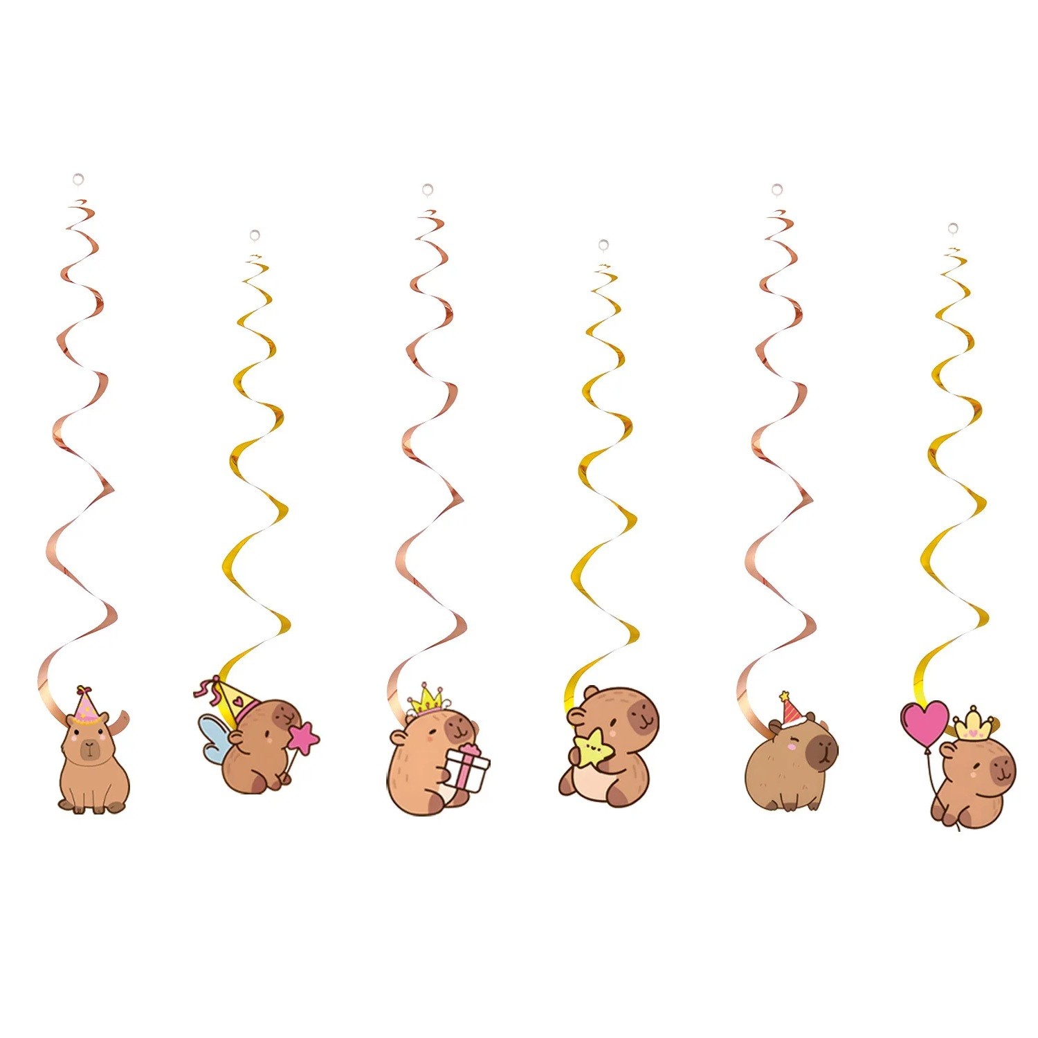 6 buc. Decorațiuni suspendate în spirală Kapybara 15 cm Spirale de petrecere cu ilustrații desenate de kapybara Decorațiune suspendată de ziua de naștere pentru petrecerea copiilor