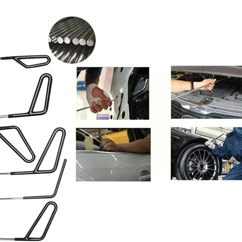 Set complet PDR din oțel inoxidabil pentru îndreptarea denivelărilor pe caroserie fără vopsire, cu bare, ciocan și pix cu capete. Descrierea completă