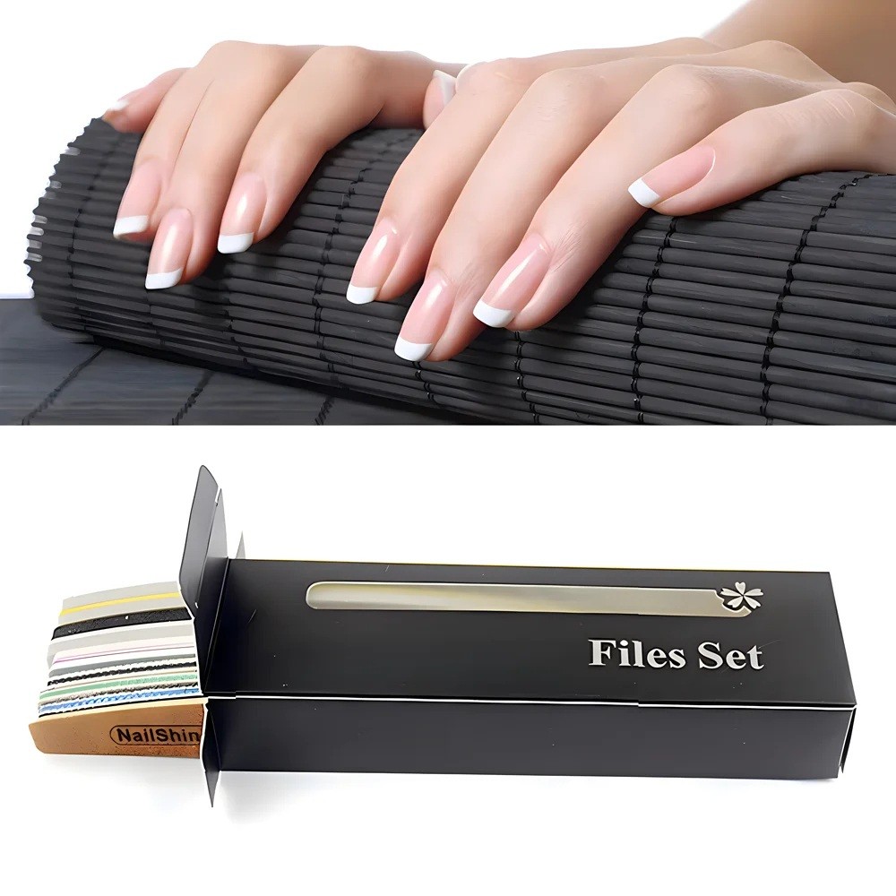 Pilnice din acril rezistente în set de 8 bucăți cu diverse granulații pentru modelarea și finisarea precisă a unghiilor naturale, gel și acril. Descrierea completă