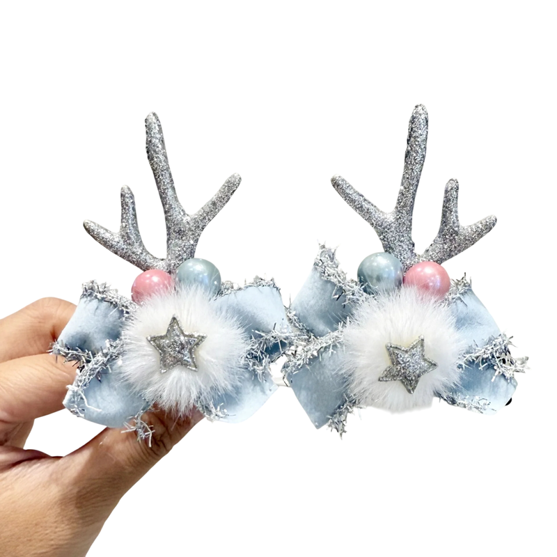 Agrafele de păr de Crăciun elegante cu coarne de ren, fundiță roșie și detalii strălucitoare vor adăuga coafurii tale un farmec festiv unic. Sunt ideale pentru perioada Crăciunului, ședințe foto, petreceri și sărbători de familie.