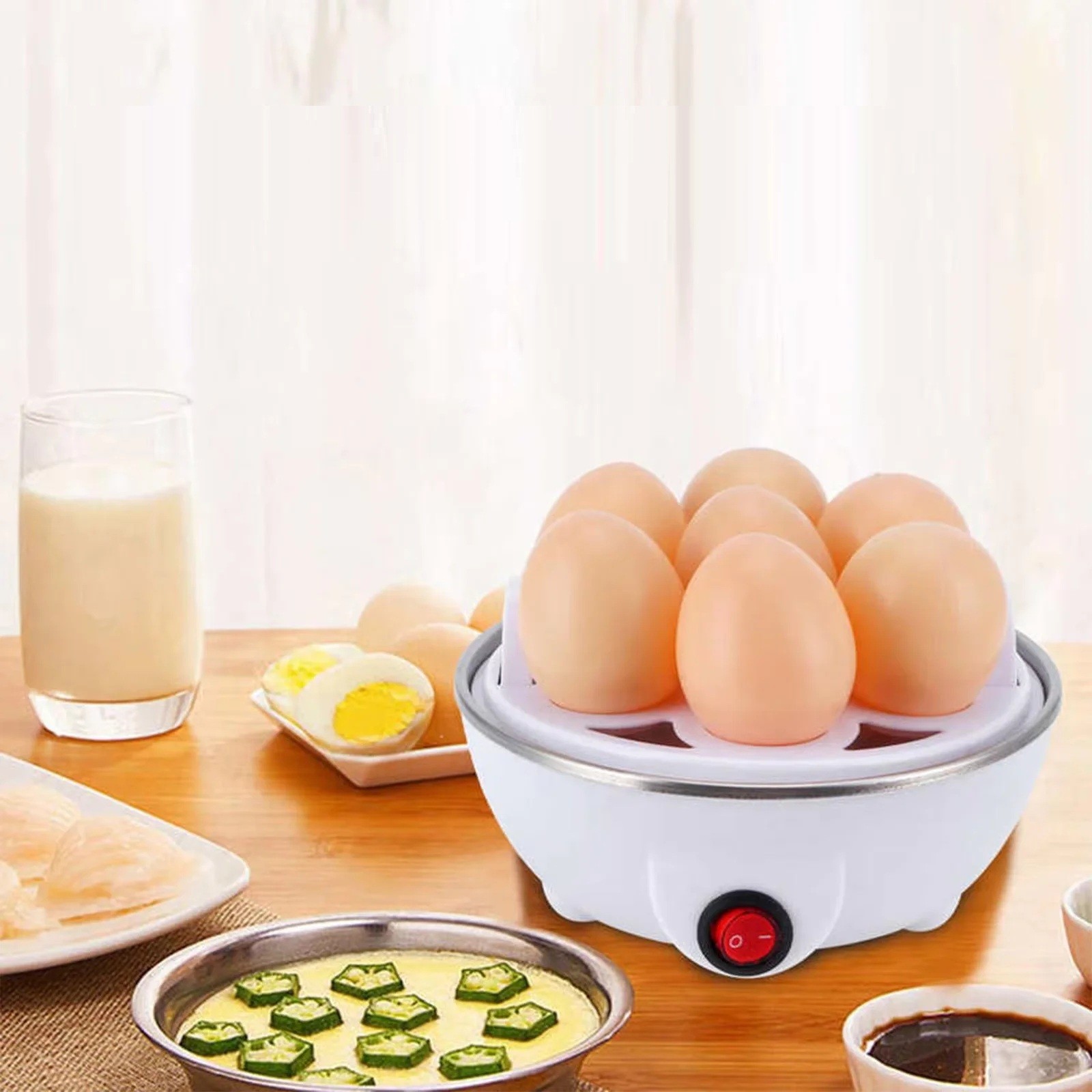 Acest aparat electric pentru fiert ouă cu capacitate de 7 bucăți reprezintă soluția ideală pentru toți cei care doresc să prepare ouă rapid, ușor și fără a necesita supraveghere constantă. Datorită puterii de 350 W și oprirei automate după gătire, poate pregăti ouă exact după gustul dumneavoastră – fie că preferați ouă moi, fierte mediu sau tari.