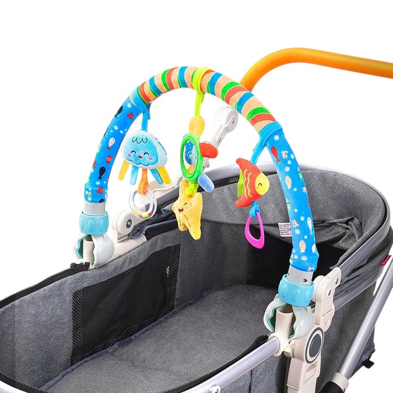 Arcade pentru copii cu jucării zgomotoase 31 x 51/87 cm Cu clip pentru cărucior și pătuț Suport pentru 3 jucării suspendate Cu oglindă și melodie Fixare cu arici Arcade pentru copii cu jucării zgomotoase și jucării suspendate este concepută pentru a oferi copilului stimulare vizuală bogată și oportunitatea de a explora în timpul odihnei sau călătoriei în cărucior. Poate fi fixată cu ușurință folosind clipuri solide pe cărucior sau pătuț, unde se menține stabil și în siguranță.