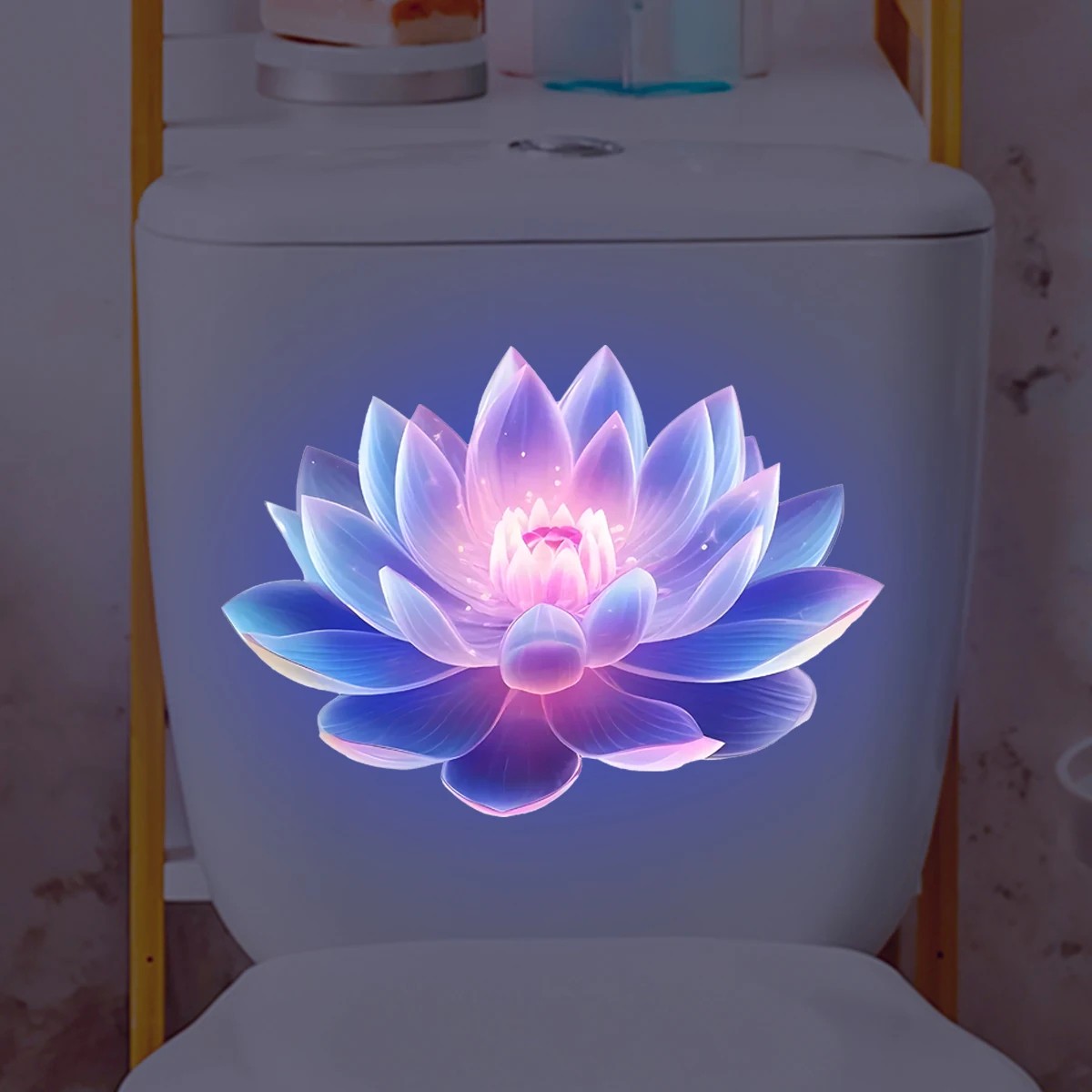 Autocolant luminos cu floare de lotus pentru toaletă 18x13 cm decorare din PVC rezistent la apă pentru WC aspect original și aplicare ușoară