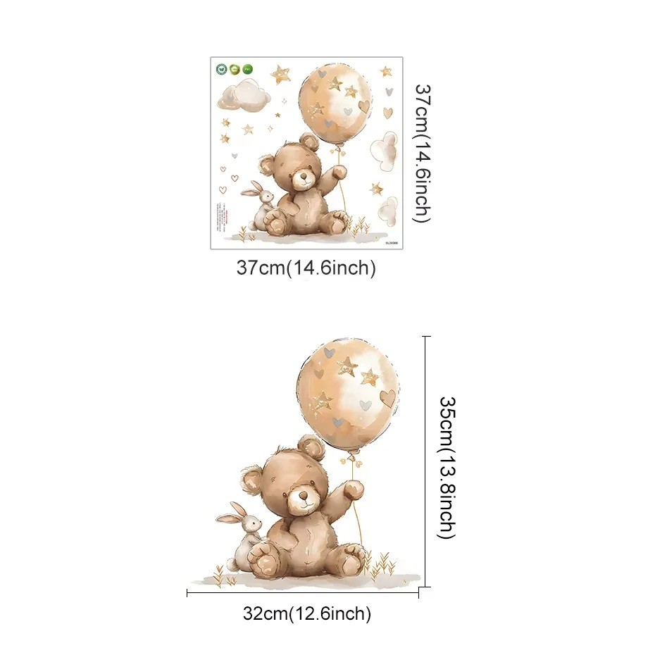 Motivul de urs are un impact pozitiv, creand o atmosfera calma si stimuland imaginatia copiilor. Aceasta decoratiune din vinil de calitate este ideala pentru utilizare pe termen lung si reprezinta o modalitate simpla de a adauga farmec si personalitate camerei copiilor.