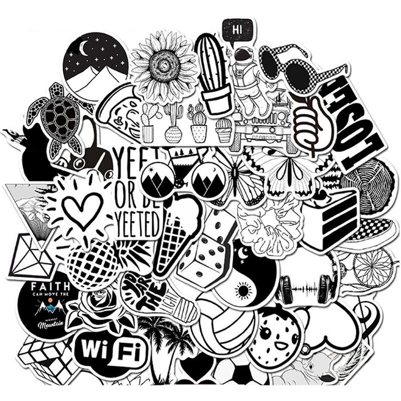 Autocolante alb-negru 10/30/50 buc