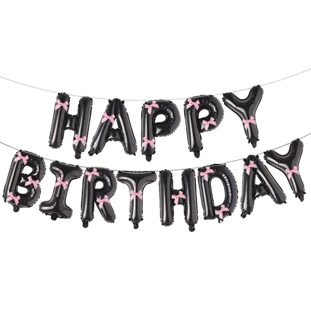 Balonase din folie HAPPY BIRTHDAY 40,6 cm baloane decorative negre în formă de litere mesaj de aniversare pentru decorarea petrecerii