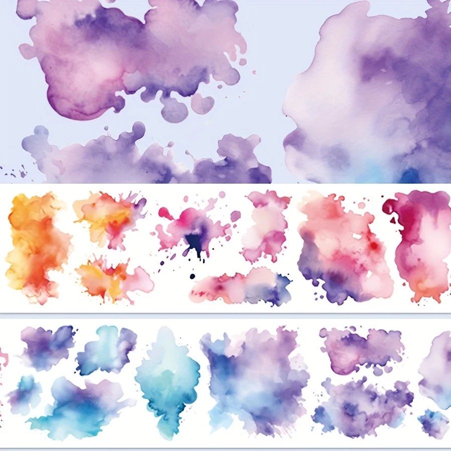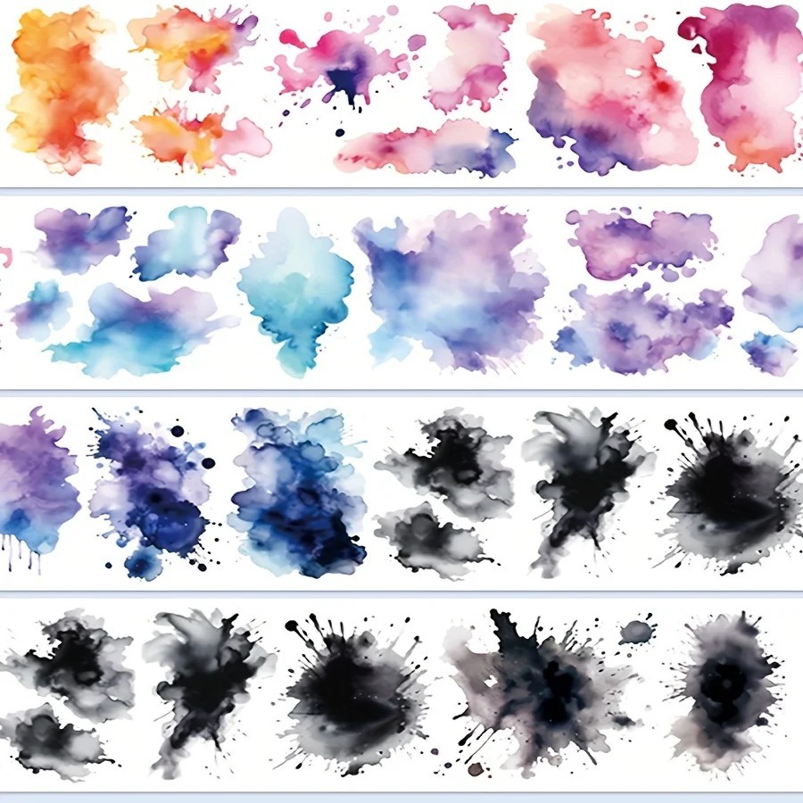 Bandă adezivă decorativă acvarel cu pete de cerneală în culori diverse pentru creații creative, decorarea caietelor, jurnalelor și ambalarea cadourilor. Descrierea completă
