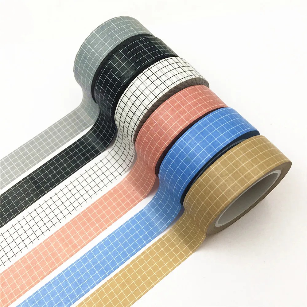 Bandă adezivă din hârtie cu model în grilă 10 m x 15 mm bandă decorativă de mascare DIY pentru scrapbooking și journaling diverse culori