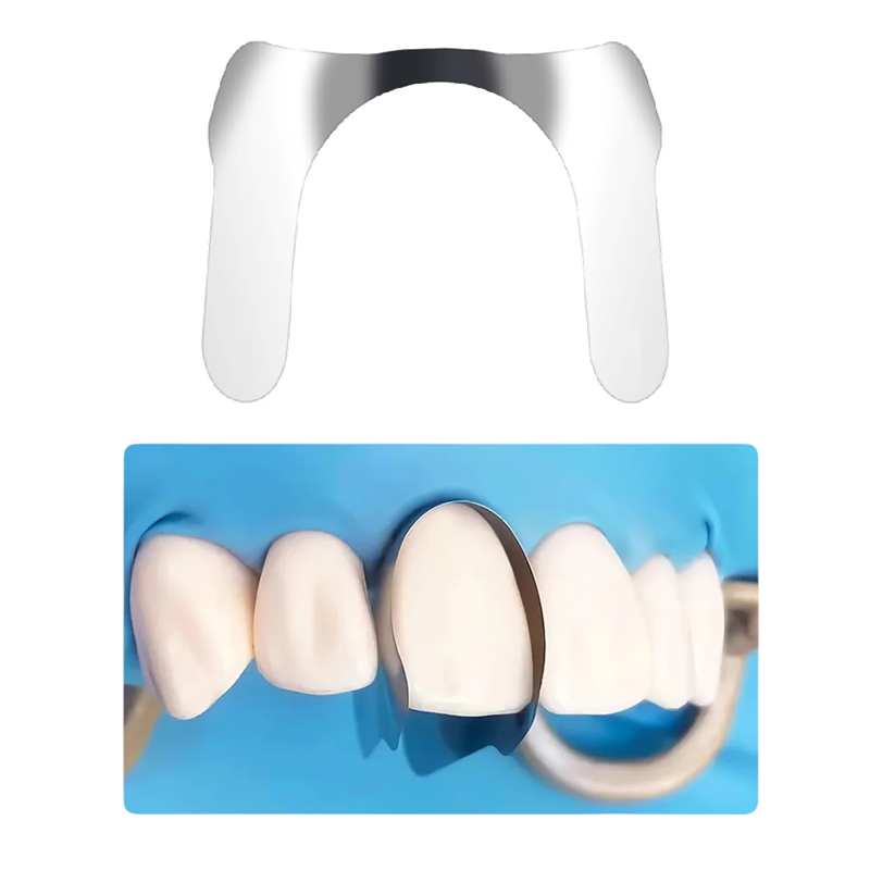 Aceste 30 buc bande de metal modelate sunt concepute special pentru utilizarea pe dinții anteriori superiori. Fabricate din oțel inoxidabil, aceste benzi sunt ideale pentru restaurarea cariei de clasa III și IV și refacerea spațiului dintre incisivii centrali. Sistemele de matrice secționale oferă utilizare versatilă, fie că este vorba de restaurarea directă a cariei sau de spațiul dintre dinți, asigurând astfel o fixare și modelare perfecte pentru o estetică și funcție mai bună a dinților.