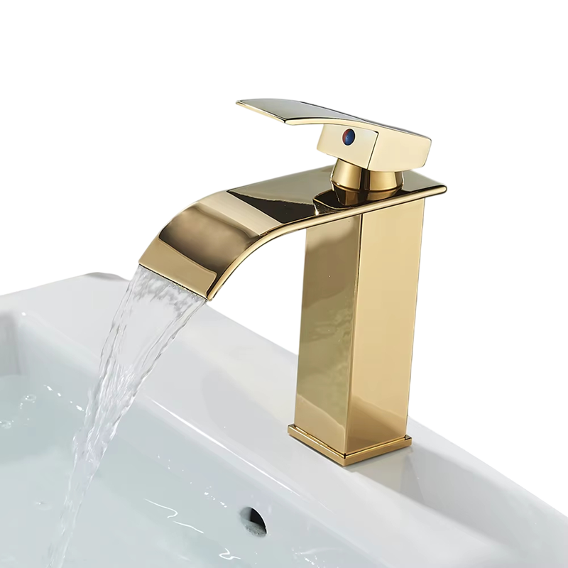 Baterie de chiuvetă cu efect de apăfall 18,3 x 11 cm Suprafață lucioasă Baterie elegantă cu montaj pe blatul de lucru Armatură de baie cu un singur orificiu