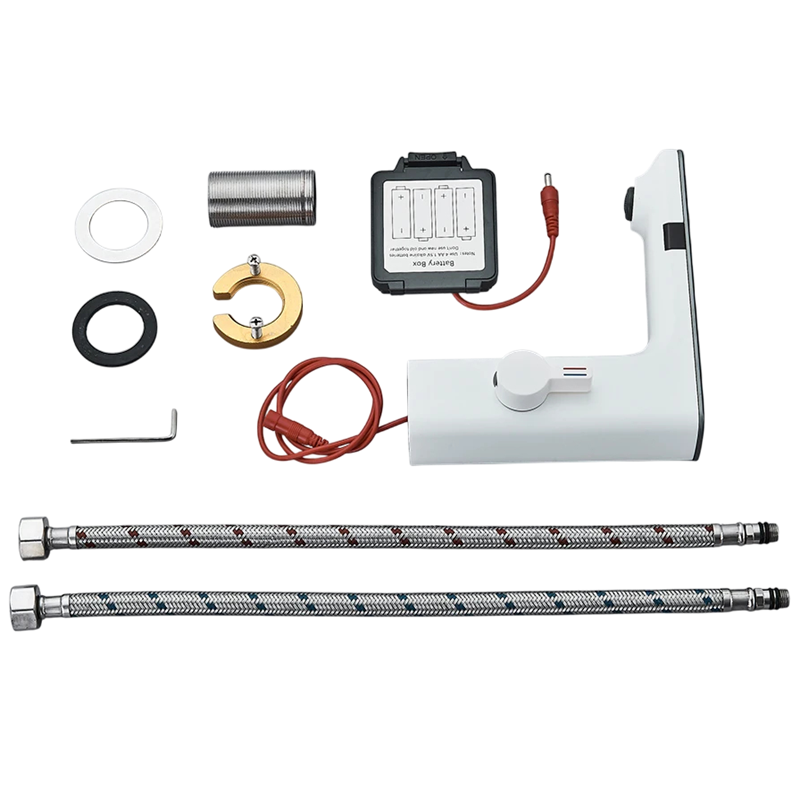 - Conținutul pachetului: 1x baterie de chiuvetă cu senzor, 2x furtunuri de conectare, 1x set de montaj, 1x garnitură