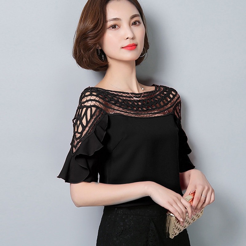 Bluză elegantă într-o singură culoare, cu perforații la modă.