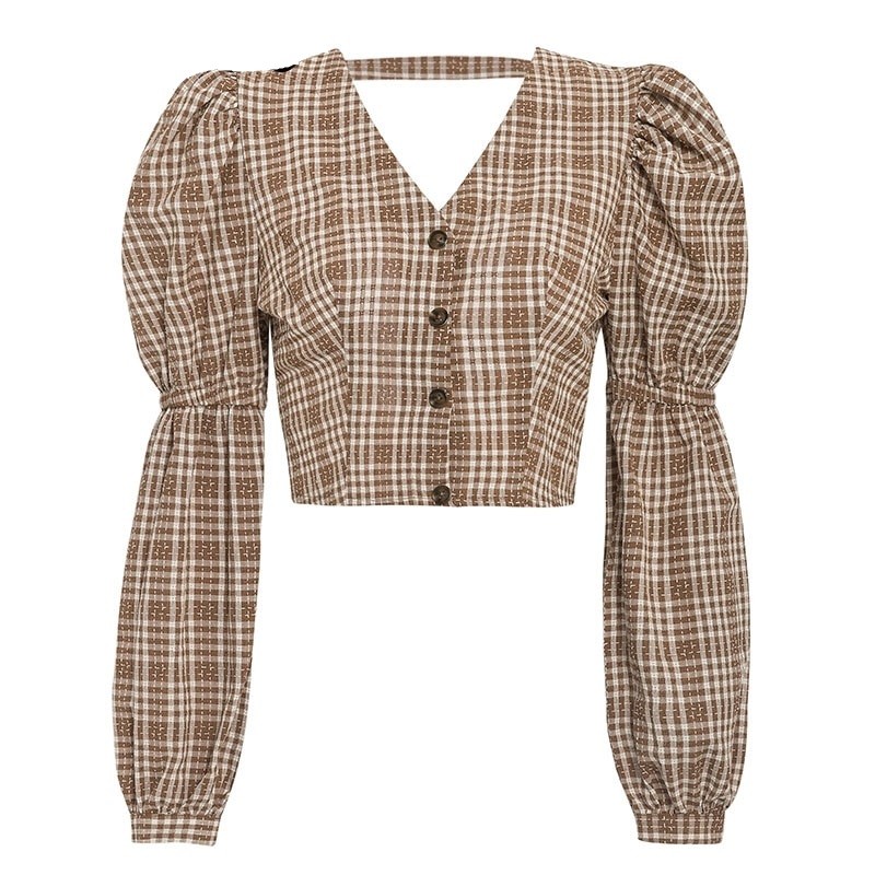 Bluză în carouri pentru femei, cu o panglică
