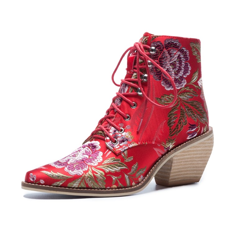 Poartă acești pantofi de lux cu toc înalt, cu ornamente. Pantofii sunt imprimați cu flori.