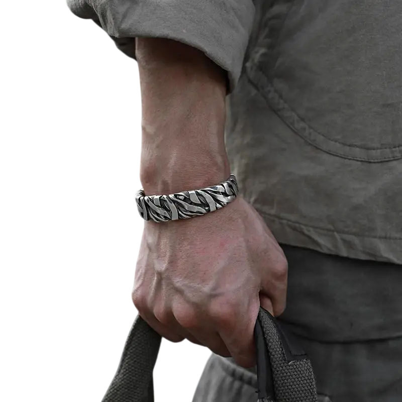 Această brăţară este nu doar frumoasă, ci şi practică. Aliajul metalic din care este fabricată asigură rezistenţa sa la zgârieturi şi păstrează aspectul chiar şi după o purtare îndelungată. Brăţara se adaptează cu uşurinţă la diferite stiluri şi este un cadou ideal pentru orice bărbat.