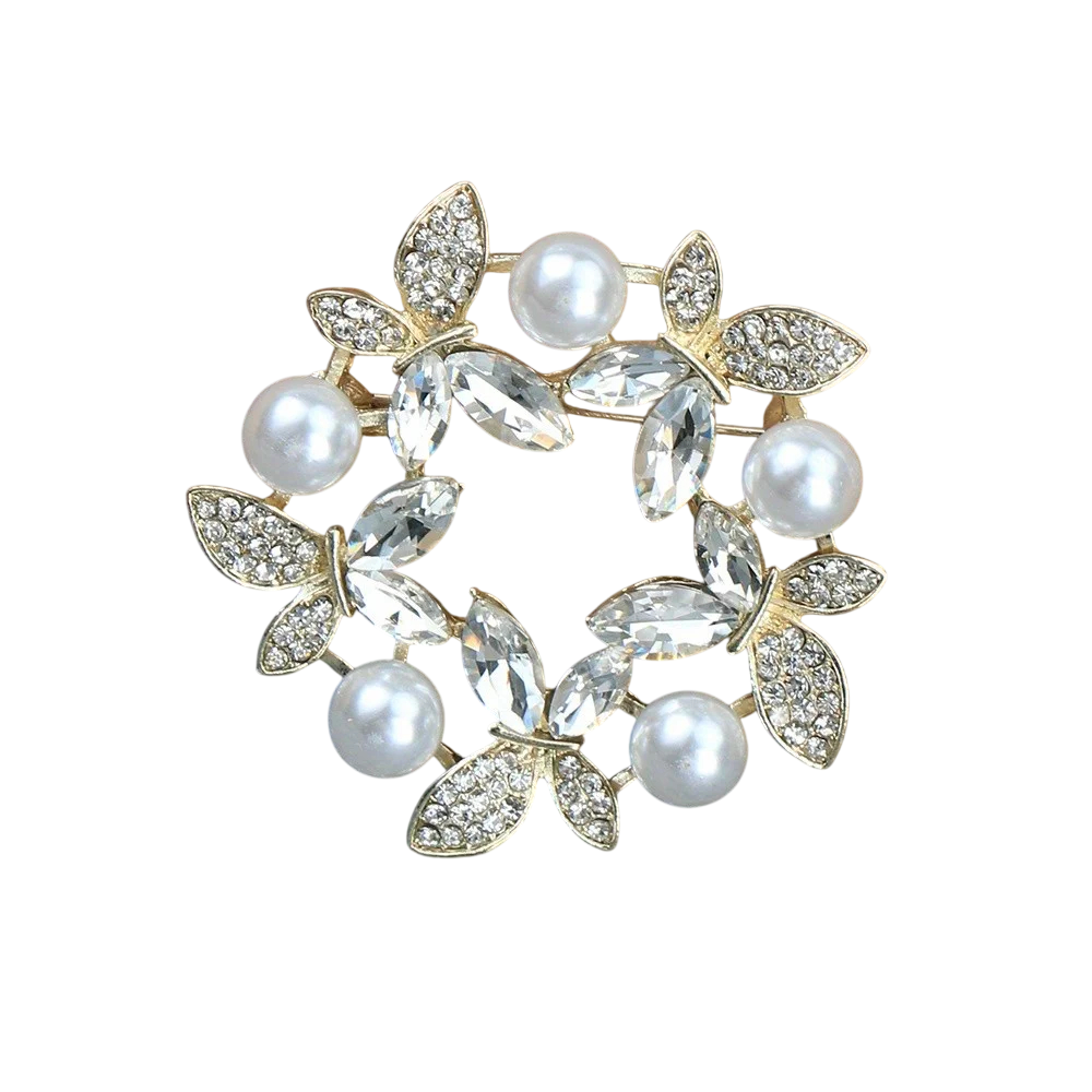 Broșă modernă 3,6 x 3,6 cm Formă rotundă Fluture și frunze Accesoriu modern discret cu pietricele Aliaj de zinc