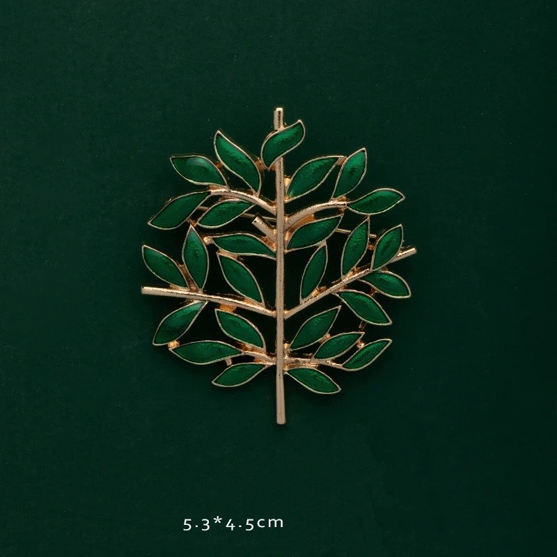 Baza broșelor este aliajul de zinc, care permite o modelare precisă și păstrarea designului detaliat. Sunt disponibile mai multe tipuri de motive, în special frunze și flori, care au un aspect elegant și universal. Datorită dimensiunilor de 2,8–9,1 cm, broșele se potrivesc atât pe palton, sacou sau rochie, cât și pe eșarfă sau geantă. Motivul vegetal adaugă ținutei o lejeritate și un aspect natural, fără a fi prea încărcat. Broșele pot fi ușor combinate cu alte accesorii și bijuterii, creând astfel un ansamblu echilibrat.
