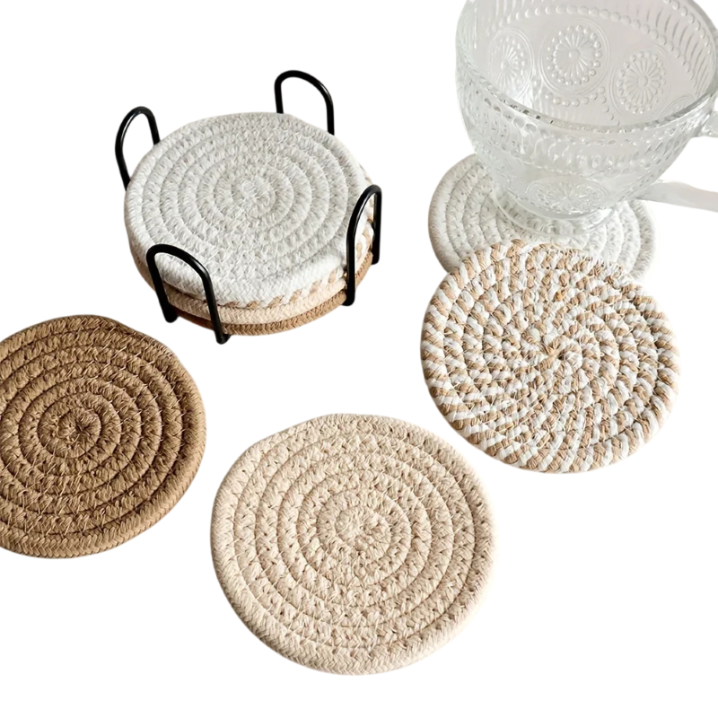 Suporturile absorbante din bumbac pentru băuturi reprezintă un accesoriu practic pentru protejarea suprafeței mesei în utilizarea zilnică. Suporturile se folosesc sub căni, pahare sau cești și ajută la separarea băuturii de suprafața mesei. Datorită designului simplu, acestea pot servi de asemenea ca element decorativ în interior.