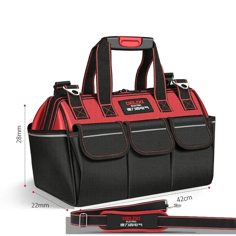 Bursă impermeabilă din Oxford gros, cu mare capacitate și multe buzunare. Ideală pentru electricieni, mecanici și atelierele de acasă. Descrierea completă