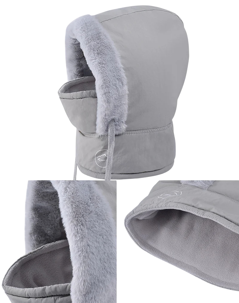 Căciulă de iarnă caldă cu mască integrată din poliester protejează capul, fața și gâtul de frig și vânt în timpul activităților în aer liber. Descrierea completă