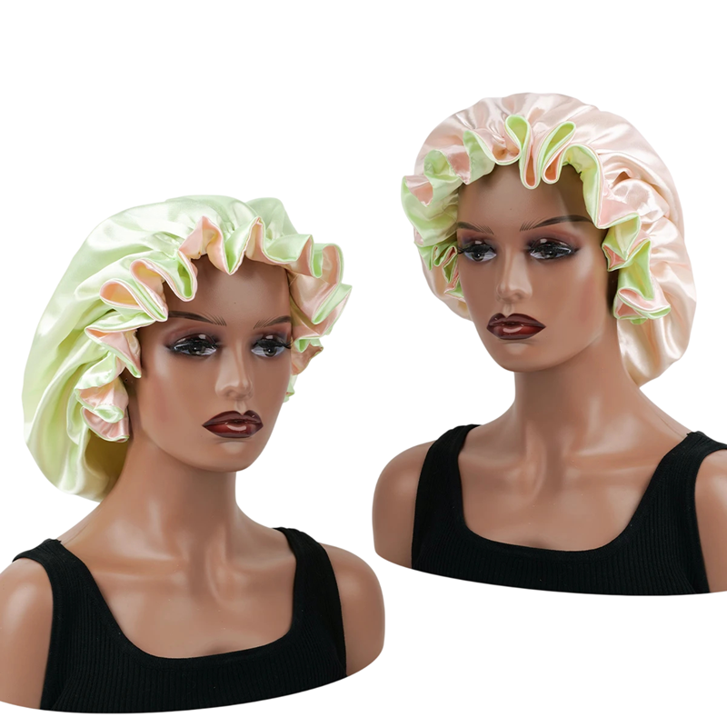 Căciulă din satin cu două straturi pentru somn din poliester, mărime universală, ideală pentru protecția părului în timpul somnului. Potrivită pentru bărbați și femei. Descrierea completă