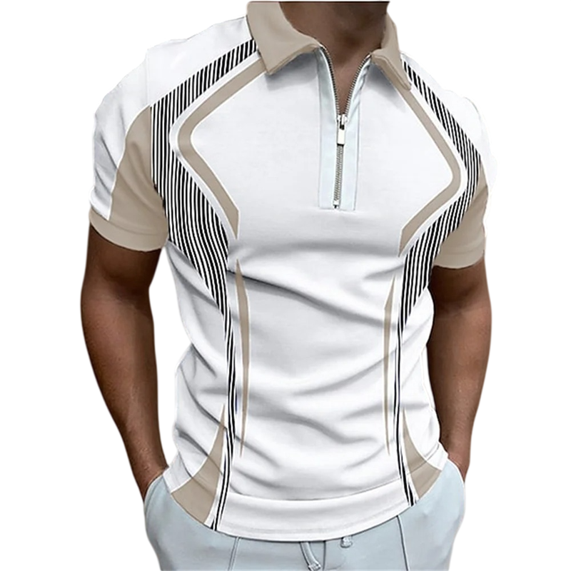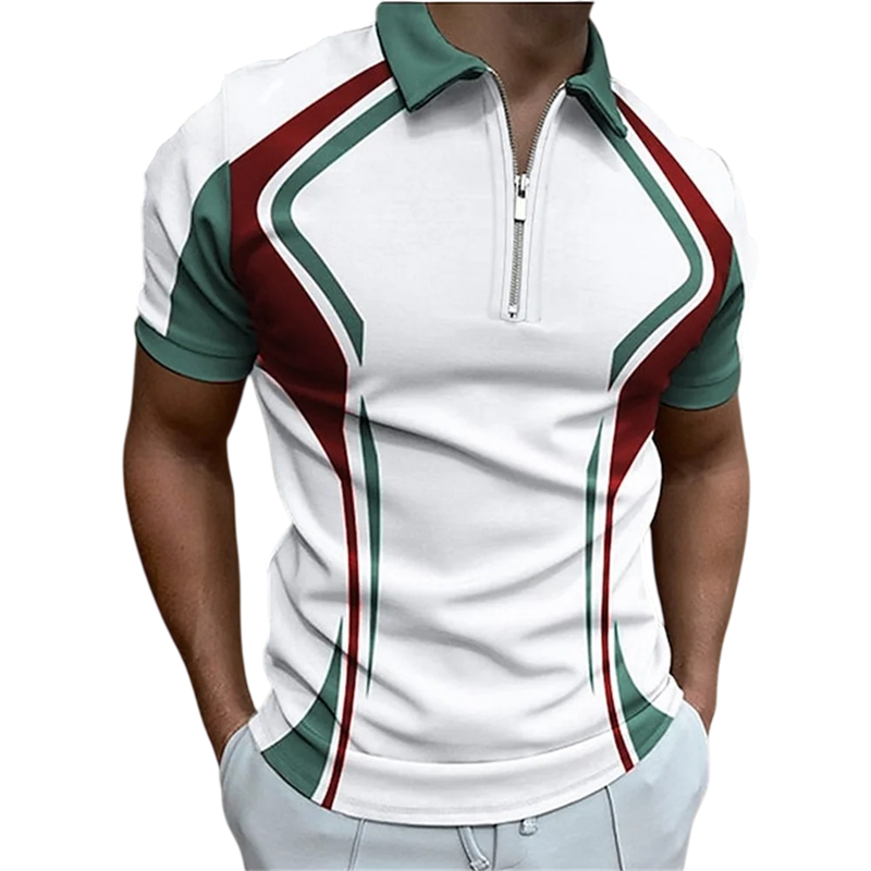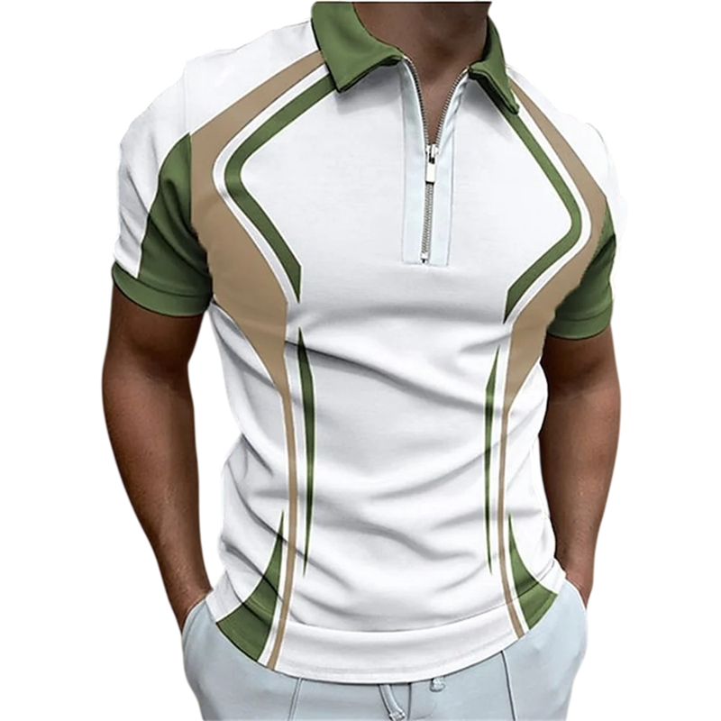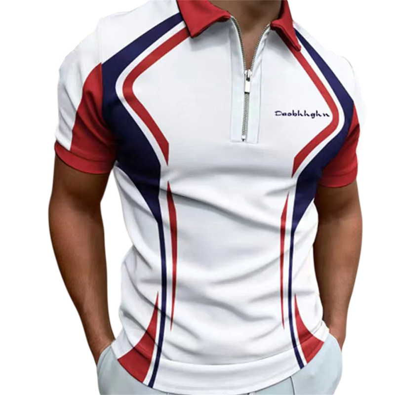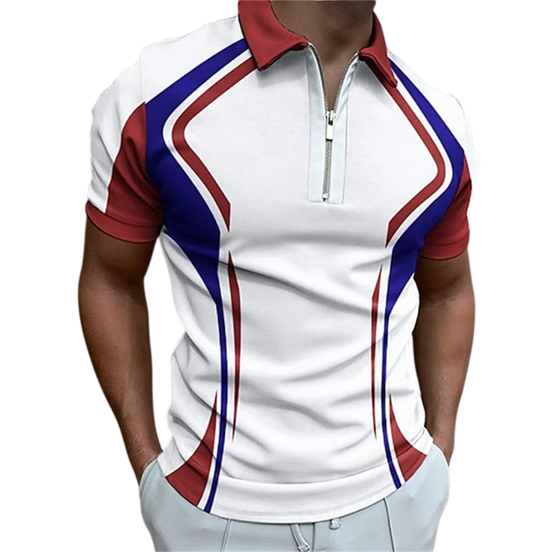 Cămașă polo bărbați cu fermoar și decolteu în V cu guler Mâneci scurte Model colorat Poliester Cămașă polo stilată de vară