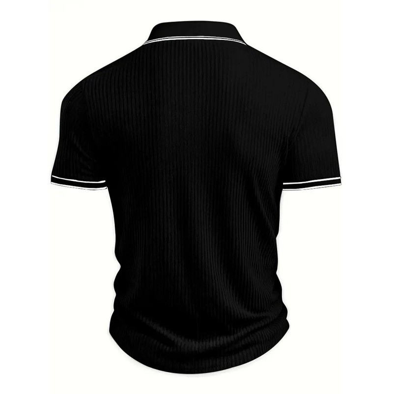 Cămașa polo pentru bărbați, cu guler și nasturi, din poliester ușor, oferă un aspect curat, confort și utilizare versatilă. Descrierea completă