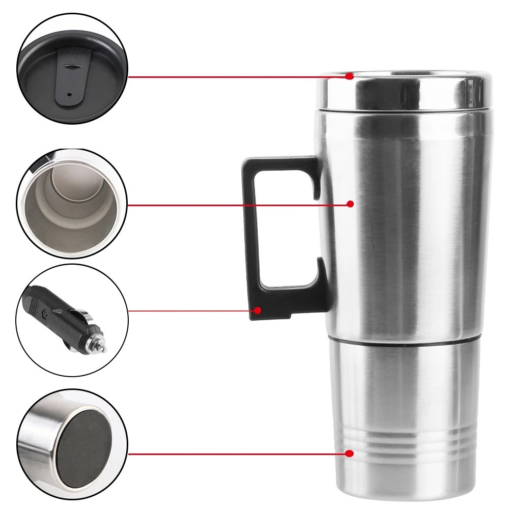 Utilizarea este foarte simplă. Umpleți cana cu lichid, închideți ferm capacul și conectați cablul la priza bratelor de țigară 24V din vehicul. Încălzirea va începe după conectarea la alimentare. Nu se recomandă activarea dispozitivului fără lichid sau umplerea peste capacitatea maximă. Capacitatea include un orificiu pentru turnare și evacuarea aburilor, astfel încât nu este complet etanș. Datorită mânerului ergonomic și bazei stabile antiderapante, cana este sigură chiar și în timpul călătoriei. Este ideală pentru șoferii profesioniști, călătorii și camping. Această cană încălzitoare de călătorie 24V vă permite să savurați o băutură caldă oricând în timpul traseelor lungi.