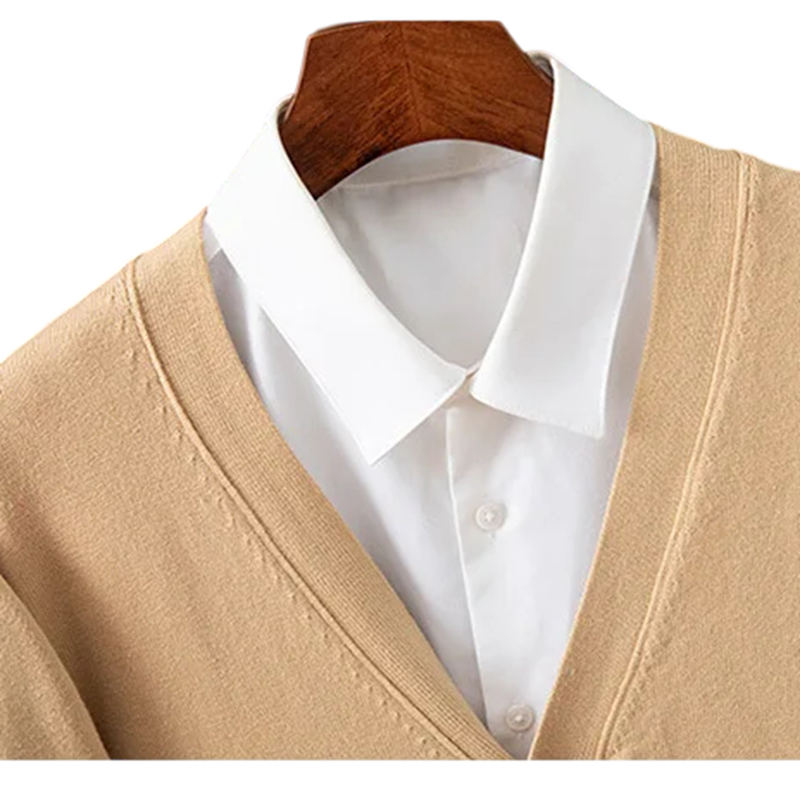 Aceast cardigan bărbaresc este alegerea ideală pentru bărbații care doresc să combine aspectul elegant, confortul și practicitatea. Datorită compoziției de calitate din nylon și poliester, este rezistent, plăcut la atingere și își păstrează forma chiar și la purtarea frecventă. Decolteul în V și deschiderea cu nasturi îi conferă un aspect clasic, potrivit atât pentru ocazii formale, cât și pentru activități de relaxare.