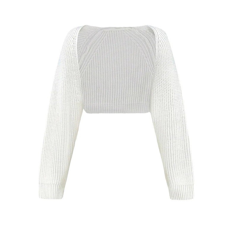 Cardigan tricotat pentru femei cu mânecă lungă, crop, uni, fără închidere, pulover stilat din acril pentru purtare zilnică