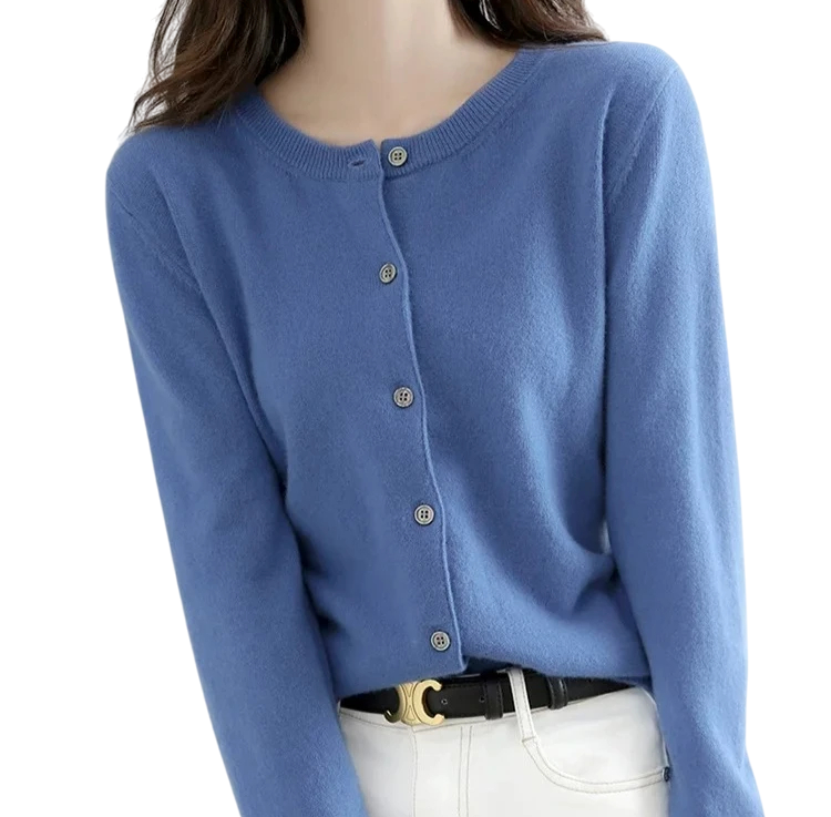 Acest cardigan tricotat pentru femei îmbină eleganța, confortul și stilul universal, care se potrivește în orice garderobă. Fabricat din material poliester de înaltă calitate, este moale, ușor și plăcut la atingere, asigurând confortul pe tot parcursul zilei. Designul într-o singură culoare conferă puloverelor un aspect atemporal și curat, în timp ce deschiderea cu nasturi permite purtarea variabilă – poate fi purtat atât închis, cât și deschis, în funcție de ocazie. Datorită decolteului rotund, are un aspect delicat și elegant, iar mânecile lungi oferă protecție ideală împotriva frigului.