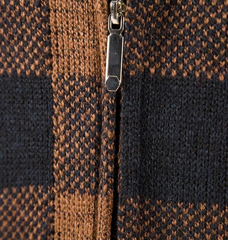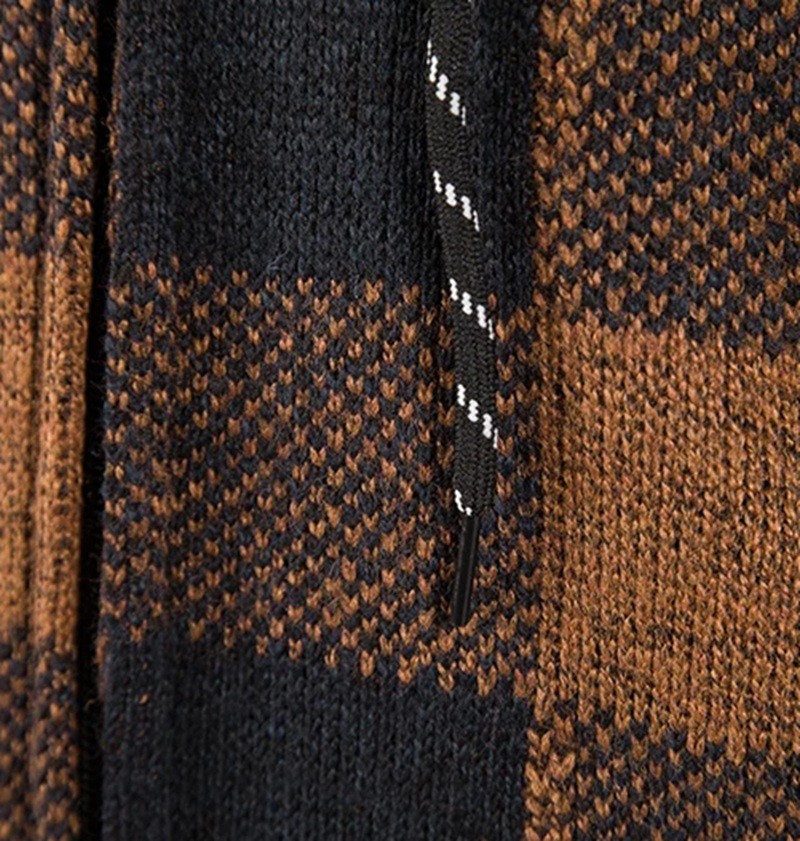 Cardigan zimbră pentru bărbați cu model în carouri și glugă cu fermoar Pulover călduros cu mâneci lungi Îmbrăcăminte de toamnă și iarnă Poliester Diverse culori