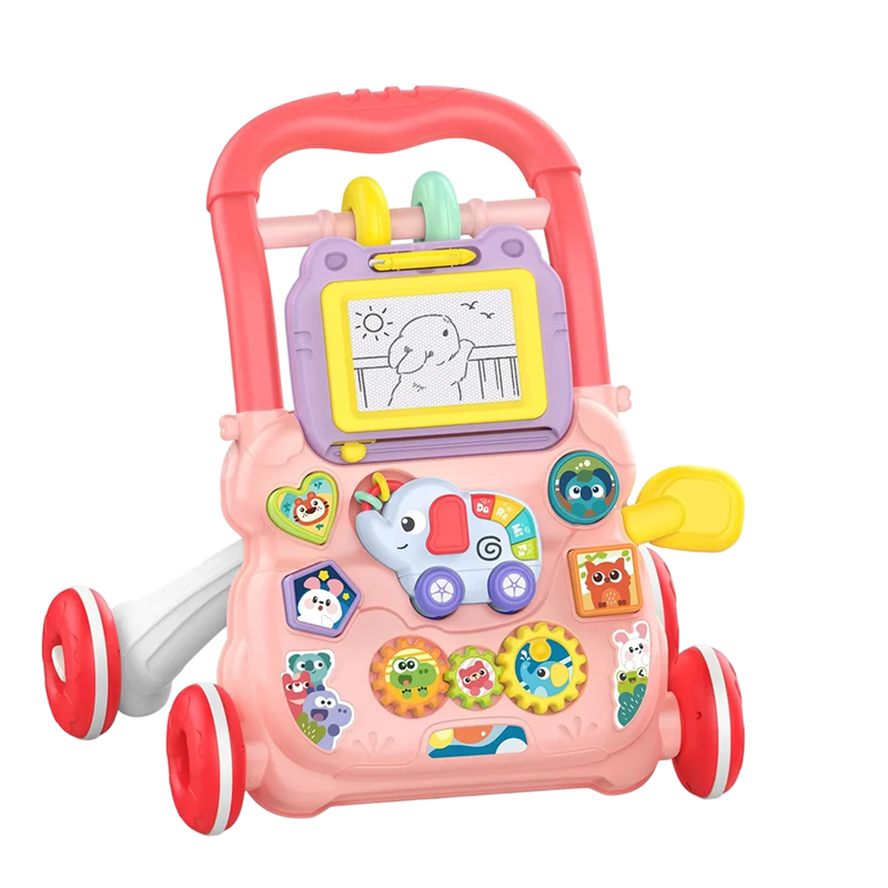 Căruciorul educativ pentru copii este un companion excelent pentru primii pași ai copilului dumneavoastră. Acesta combină distracția, mișcarea și învățarea într-un singur centru interactiv. Datorită suprafeței de desen, efectelor sonore și activităților pentru recunoașterea formelor, ajută copilul să dezvolte coordonarea, dexteritatea și imaginația. Căruciorul este proiectat pentru a fi sigur, stabil și ușor de manevrat chiar și pentru cei mai mici. Acest ajutor multifuncțional va deveni jucăria preferată, care nu doar că va distra copilul, ci îl va și educa și motiva să se miște.