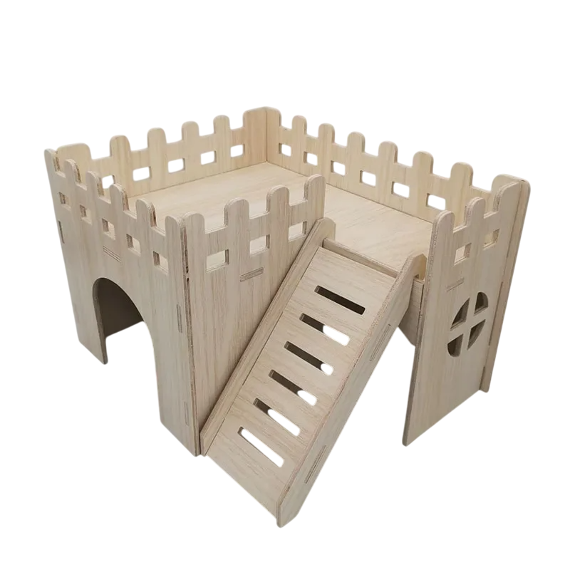 Această casă spațioasă din lemn este adăpostul ideal pentru hamsterul dumneavoastră sau pentru alt rozător mic. Oferă nu doar un spațiu acoperit pentru odihnă, ci și elemente de joacă sub formă de scări și un acoperiș plat, care poate servi ca terasă de observație. Fabricată din lemn natural fără tratamente chimice, este complet sigură pentru animale și se integrează ușor în orice tip de cușcă sau spațiu de joacă. Casa susține comportamentele naturale, cum ar fi ascunderea, escaladarea și observarea mediului, contribuind la sănătatea fizică și psihică a animalului.