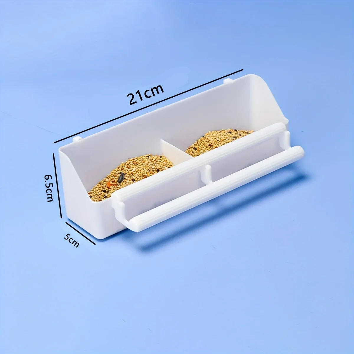 Această căsuță practică din plastic alb este soluția ideală pentru oricine crește păsări în cuști. Datorită designului său dublu, permite oferirea simultană a două tipuri de hrană – de exemplu, semințe și fructe sau hrană și apă. Căsuța este echipată cu un băț confortabil, care oferă păsărilor un spațiu stabil pentru a sta în timpul hrănirii. Este proiectată pentru a fi ușor de suspendat pe peretele cuștii, asigurând o fixare sigură și stabilă. Cu dimensiunile de 21 x 5 x 6,5 cm, se potrivește în majoritatea cuștilor obișnuite pentru păsări mici și medii.