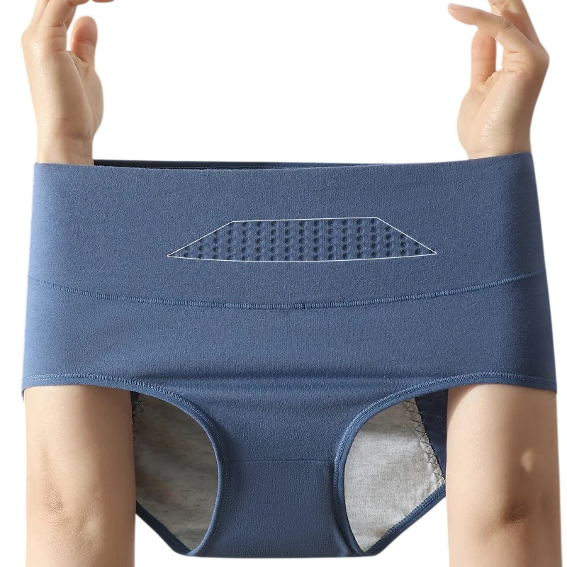 • Chiloți menstruali cu talie înaltă pentru purtare confortabilă și stabilă