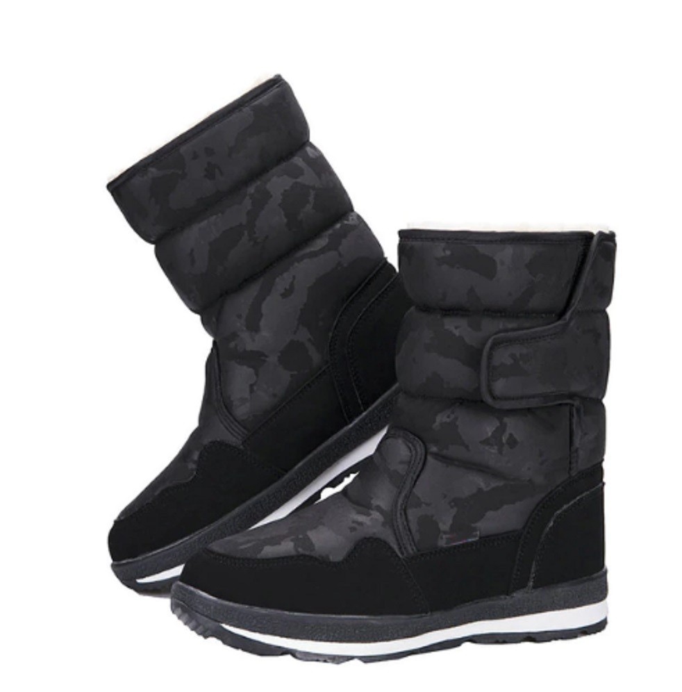 Aceștia se pot bucura de distracția de iarnă în aceste cizme de iarnă. Pantofii au un model armată și sunt potriviți atât pentru bărbați, cât și pentru femei.