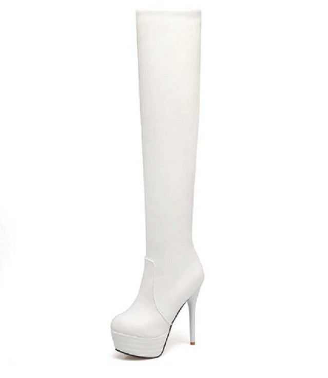 Fiecare femeie va adora aceste cizme elegante. Cizmele sunt deasupra genunchilor și au toc.